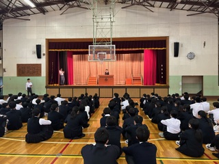 2年生の学年集会を行いました。学級委員長からは現状の課題と2年生後期の過ごし方について話してもらいました。