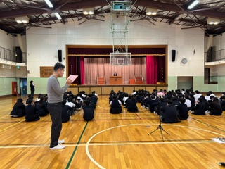 そのあと、世田谷区スピーチコンテストに出場した2名に本番と同じスピーチを行って貰いました。原稿をしっかりと覚え、堂々と話す姿は立派です。同級生の頑張る姿に刺激をもらえたら最高です!
