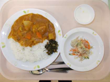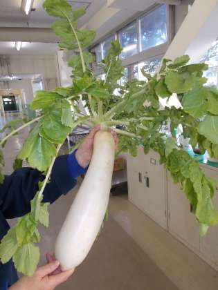 今日の給食は、世田谷区で栽培された大蔵大根を使用した