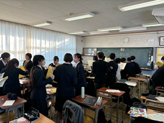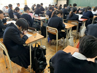 1クラスが見学をしている間、他クラスでは、振り返りの記入をしたり、百人一首の暗唱テストをしたりしています。
