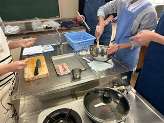 1月28日(火)4時間目、1年A組の家庭科の授業では調理実習の2回目を行いました。