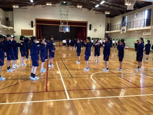 今日は初めて全学年が集合し、縦割りのクラスごとに応援練習を行いました。3年生の応援団を中心に、協力し合ってダンスの振り付けや隊形移動の確認ができていました。今から本番が楽しみです!
