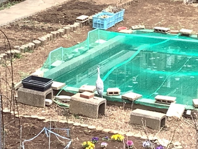 花や葉の下には、鯉が泳いでいる様子が見えます。