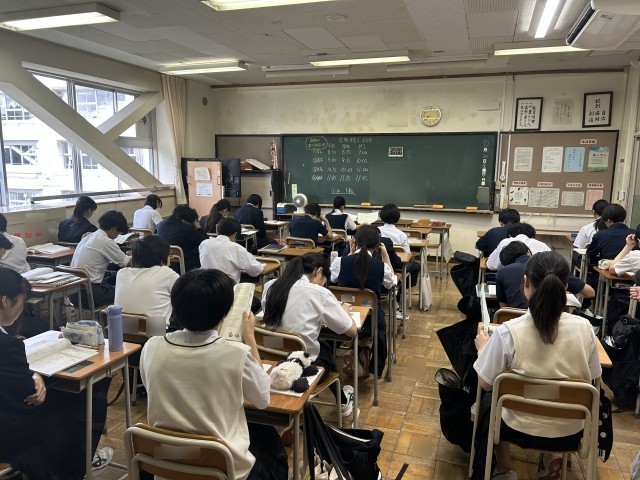 これまでの学習の成果を十分に発揮してほしいと思います。写真は1時間目にある30分間の「学びの時間」の様子です。真剣に最終確認を行なっています!!