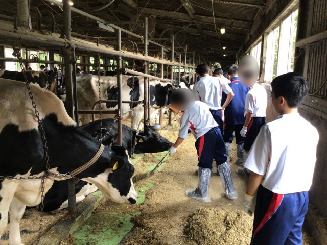 酪農体験では乳搾りやエサやり、バター作りを体験しました。