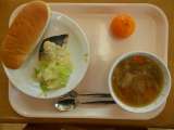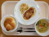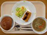 【今日の献立】 ココアパン 野菜と押し麦のスープ いかフライ チーズ入り野菜サラ...