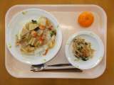 【今日の献立】 しっぽくうどん きりたんぽ パインゼリー