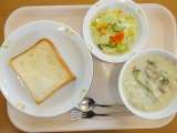 【今日の献立】 シュガートースト 冬野菜のシチュー キャベツとコーンのサラダ