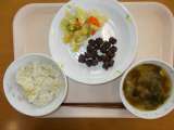 【今日の献立】 ゆかりあえ 炒り豆腐 キャベツの塩昆布和え りんご