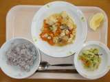 【今日の献立】 中華おこわ 肉団子入りスープ カップヨーグルト