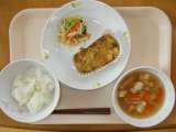 【今日の献立】 ごはん すまし汁 松風焼き 油揚げと野菜のおかか和え