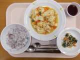 ゆかりごはん 炒り豆腐 野菜のごま和え ぶどうゼリー