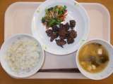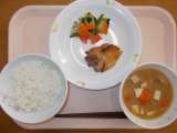ごはん 三平汁 鶏のはちみつ醤油焼き 白菜と青菜の和え物