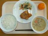 1月25日(木)の給食 牛乳 ごはん 味噌汁 クジラの竜田揚げ もやしとしめじの...