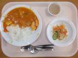 10月16日(水)の給食 牛乳 ハヤシライス こんにゃくサラダ カフェオレゼリー...