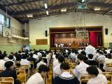 合唱コンクール前に縦割り交流会が行われています。他学年の合唱を聞いて学べるものを...