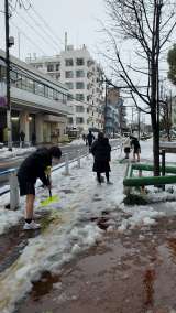 昨日の大雪の影響で学校の前も雪が積もっていました。 女子バスケットボール部の生徒...