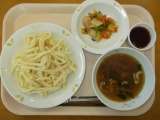 2月7日(水)の給食 牛乳 肉汁うどん 野菜とツナの和え物 ぶどうゼリー