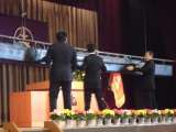 閉式後、スクリーンの準備が始まりました。なんと、3年生の先生方が作った3年間の...