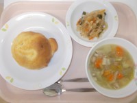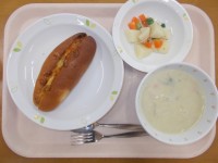 3月21日(金)の給食牛乳ツナマヨサンド豆乳スープ角切りポテトサラダ