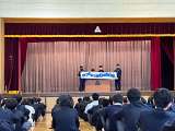 体育祭応援団の結団式を行いました。 団長の決意や、練習割当て、取り組みに関するル...