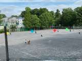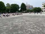? 放課後の校庭では、エール交換の練習が行われていました。各団の団長の声や太鼓の...