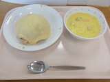 【今日のメニュー】 ・ビスキーパン ・パンプキンシチュー