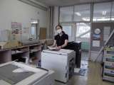 パーティーションをつけて、ソーシャルディスタンスをあけた、座席で授業を受けます。