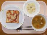 6月30日(金)の給食 ピザトースト 白菜スープ ジャーマンポテト