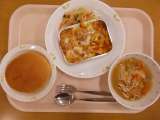 【今日の献立】 ・丸パン ・野菜スープ ・トマトチキングラタン ...