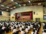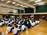 河口湖移動教室に向けての学年集会をランチルームで行いました。 校長先生のお話や実...