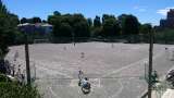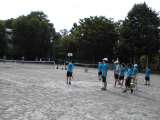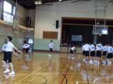 学校休校期間が終わり、バスケットボール部は男子はドリブルシュート、女子は二人組シ...