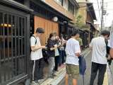 体験学習として京和菓子作りを体験しています。外国の方も一緒に体験していて、インス...