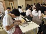 陶芸にチャレンジした班や和菓子作り体験、ちりめん細工の人形作り体験など、様々な体...