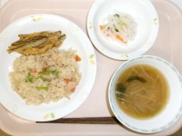 4月27日(月)の給食牛乳たけのこごはんみそ汁わかさぎの天ぷら野菜の甘酢和え