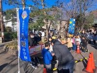浄真寺の参道にて新春こどもまつりが行われています。昨年と同様、八幡中からは生徒会、吹奏楽部、バンド、ダンスが参加。生徒会は『なぞみくじ』を作りました。クイズに答えるとアメをもらえます。『ヒントお姉さん...