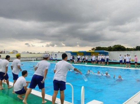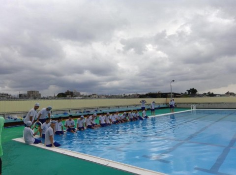 最後のプールは命を守る授業「着衣水泳」を行っています。