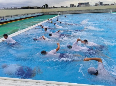 体力を消費しにくい「エレメンタリー バック ストローク」という泳法も体験しました。