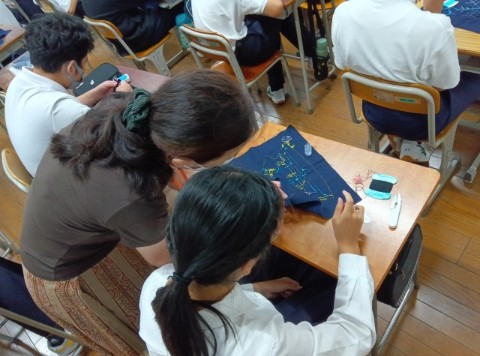 印に合わせて刺繍の糸で模様を完成させていきます。