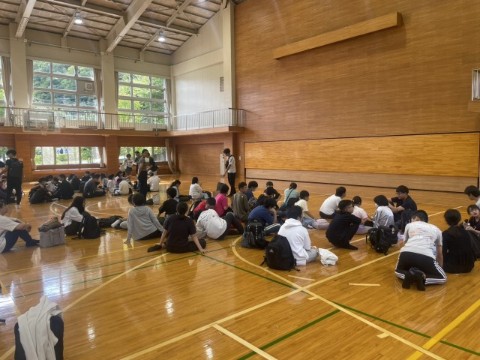天気が良すぎるので、急きょ開園式を体育館で行います。