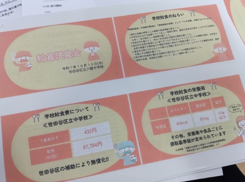 今日はPTA文化厚生委員会主催の給食試食会が行われています。もちろん、八幡中で初めて行う行事です。