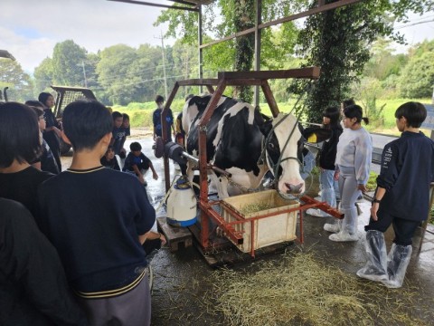 最初は乳牛の大きさに怖がっていた生徒も、帰る頃には「もっと早く牛と仲良くなっておけば良かった~」というほど、楽しい時間を過ごしていました。