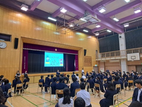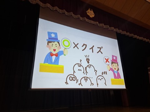 今日の生徒朝礼は、生徒会による○✕クイズ。
