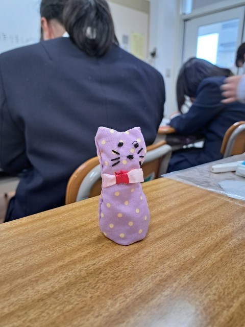 3・4時間目、C組は家庭科の授業で『ねこのお手玉』を作成しました。