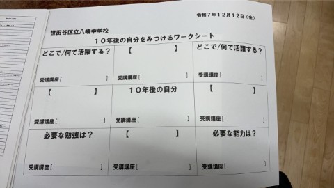 世田谷総合高校の先生は、総合学科の授業『キャリア教育・10年後の自分に向けて』という将来の自分を見据えて何を学習していくべきなのかをシートを埋めて自己分析しました。