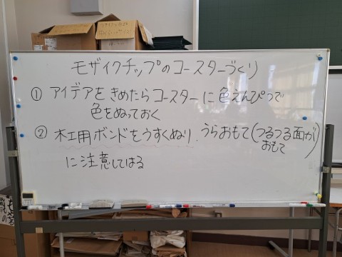 3時間目、C組の家庭科の授業は『モザイクチップのコースター』を作っていました。