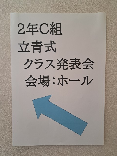 現在、ホールにてC組の立青式クラス発表が行われています。