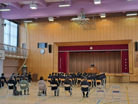 2月の本番に向け、八幡中2年生代表意見文が決まる緊張感ある体育館でした。