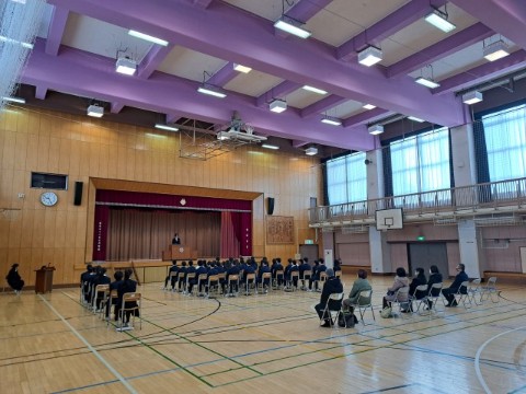 1時間目、体育館では2年生立青式に向けた発表代表意見文を決める最後の会が行われました。