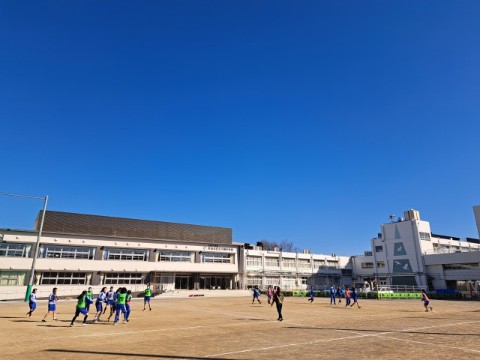 チームで作戦を考え、校庭を駆け回っています。